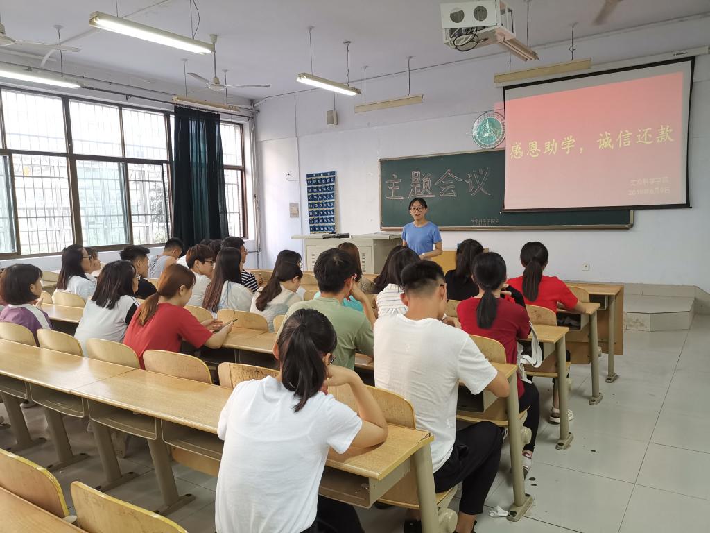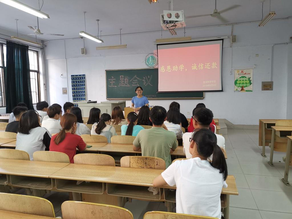 为了增强大学生的诚信意识,培养广大贷款学生的感恩精神,加深同学们对诚信还款的认识。365上市公司于6月9日在求实楼1007教室开展了以“感恩助学,诚信还款”为主题的教育活动。