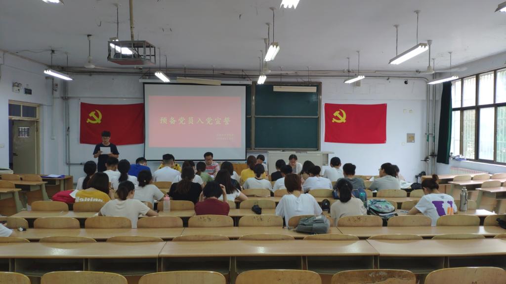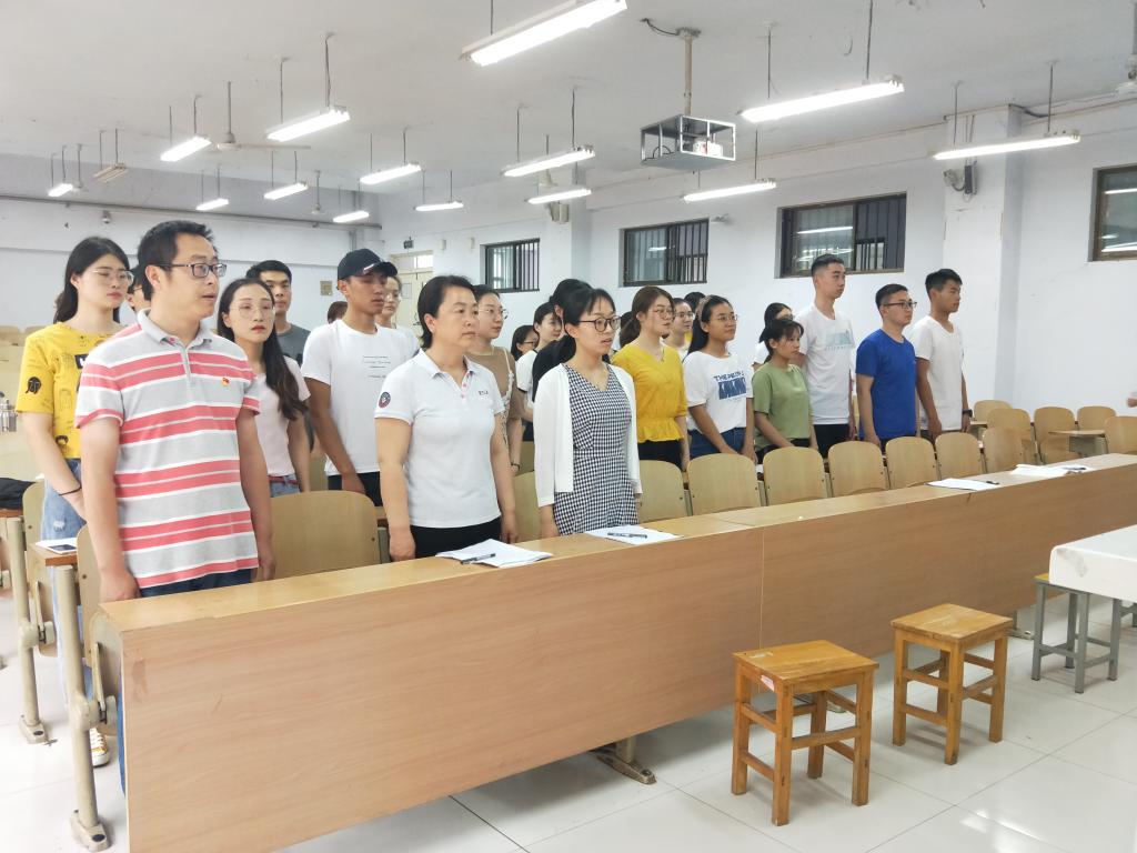 2019年6月20日下午,365上市公司于求实楼1011教室召开预备党员入党宣誓大会。365上市公司党总支副书记夏书珍、辅导员周向军、郑金召参加了此次大会。2019年上半年发展的预备党员参加了此次会议。此次宣誓仪式由辅导员郑金召主持。