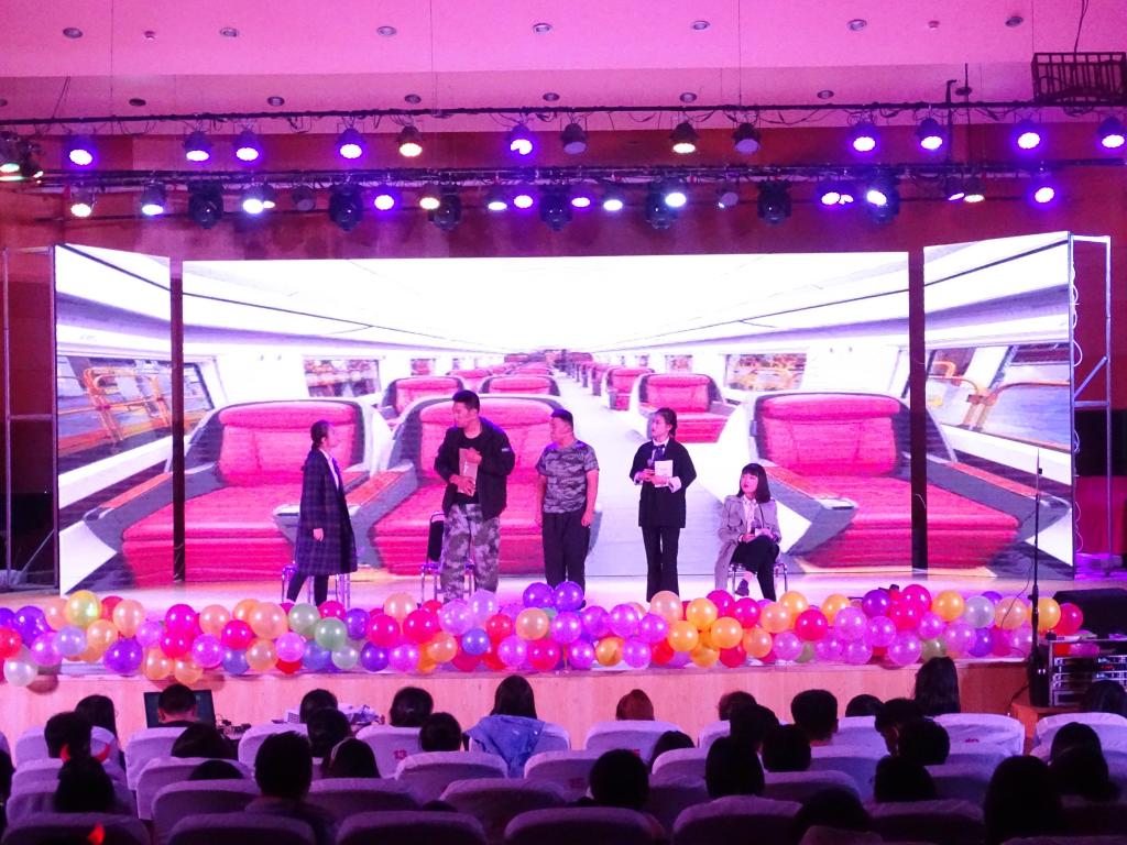 10月19日早上8点,365上市公司的演出人员和志愿者们就已经紧锣密鼓的准备这场盛宴,从布置舞台到演员的化妆工作,大家马不停蹄,只为夜幕降临时的精彩绽放。流光溢彩迎新夜,心心连新齐飞扬。晚会由激情洋溢的开场舞开幕,从一开始就带动了全场的气氛。晚会的节目一个接一个的呈现在观众眼前,本次晚会节目内容丰富,幽默的默剧《过安检》,演员的滑稽表演,呆萌的动作逗的全场哈哈大笑;动感富有创新的歌舞串烧使得现场欢呼阵阵;抒情歌曲《你不知道的事》、《面具》等轻轻敲击新生们的心扉;一首二胡独奏,全场的气氛达到了高潮,最后,在《无名之辈》的歌声中,长达两个小时的充满激情和欢乐的晚会完美落幕。