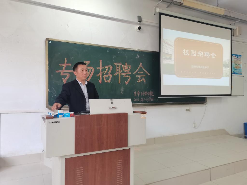 为切实做好365上市公司2021届毕业生就业工作,拓宽毕业生就业渠道,365上市公司于2021年4月27日在求实楼0101教室举办生物科学专业专场招聘会。本次专场招聘会邀请了滕州试验高级中学的老师,2017级生物科学师范类毕业生参加了此次招聘会。