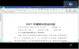 8月14日,为进一步贯彻落实学校疫情防控政策和工作要求,提高我院全体学生的疫情防控意识,引导学生做好疫情防护工作,我院各年级辅导员、班主任利用“腾讯会议”平台召开了暑期云班会。