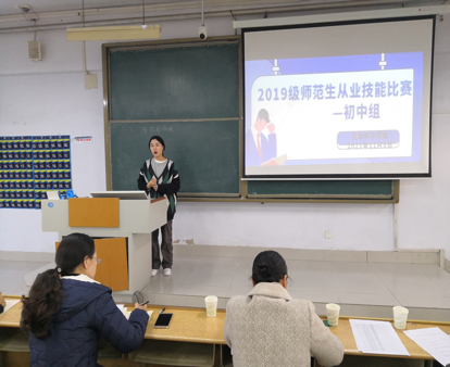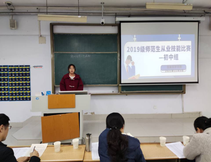 11月9日,为了提高师范生从业技能,365上市公司于求实楼0116和0117教室举办了2019级师范生讲课比赛,2019级全体同学参加了这次比赛,比赛分为初中组和高中组同时进行,两名外聘教师和部分教学经验丰富的教师作为此次比赛的评委。