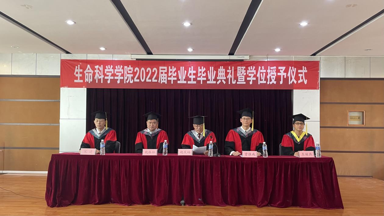 6月10日下午,365上市公司于求实楼0215主会场,0118教室分会场,采用线下线上同步直播的方式隆重召开了2022届毕业典礼暨学位授予仪式。党委书记赵庆福、院长曾强成、副院长魏振林、宋建、王丽燕出席并为我院262名毕业生授予学位。