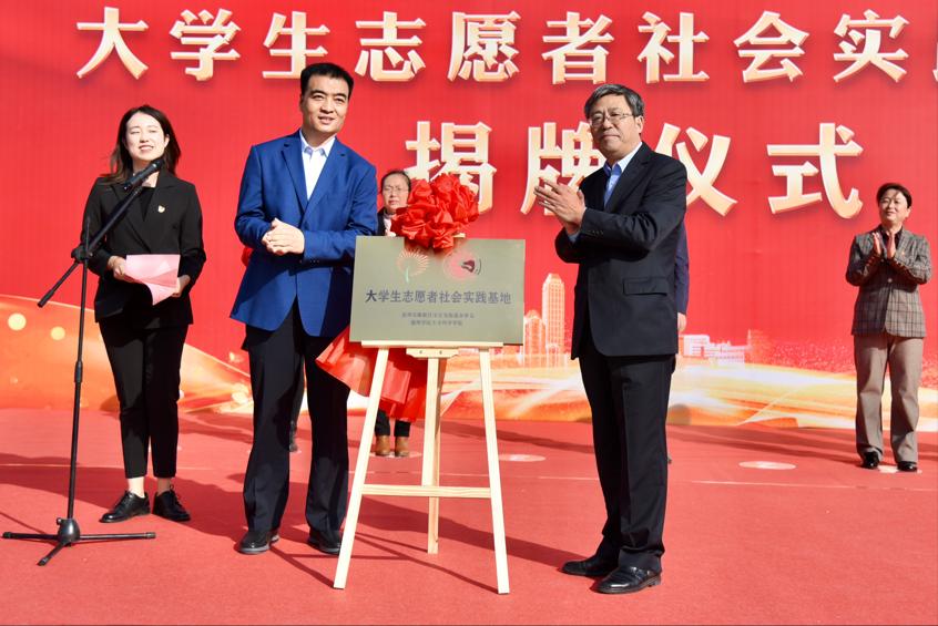 揭牌仪式上,主持人首先宣读了《宋官屯街道 大学生志愿者社会实践基地合作共建方案》。