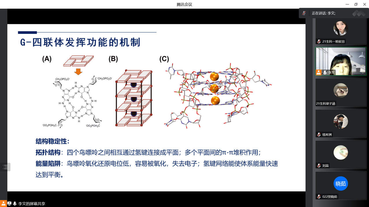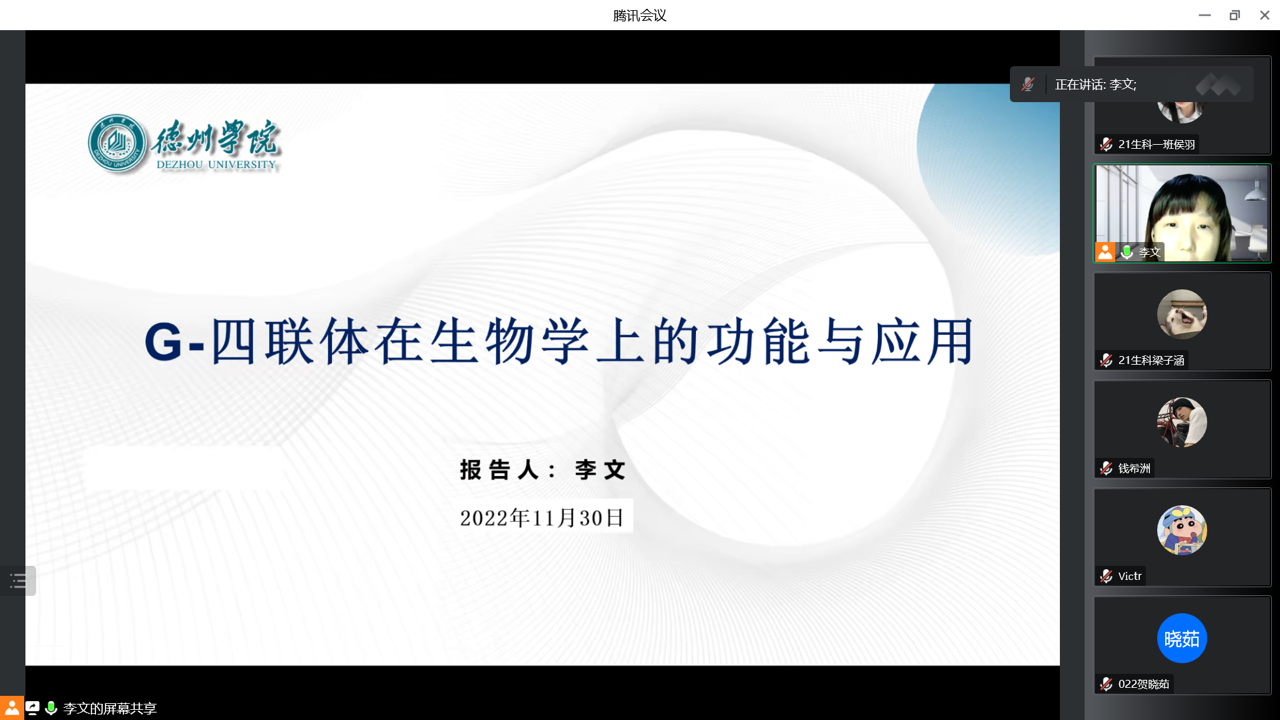 11月30日,为搭建学术交流平台,营造良好的学术文化氛围,365上市公司通过腾讯会议举办线上“G-四联体在生物学上的功能与应用”专业前沿知识讲座。
