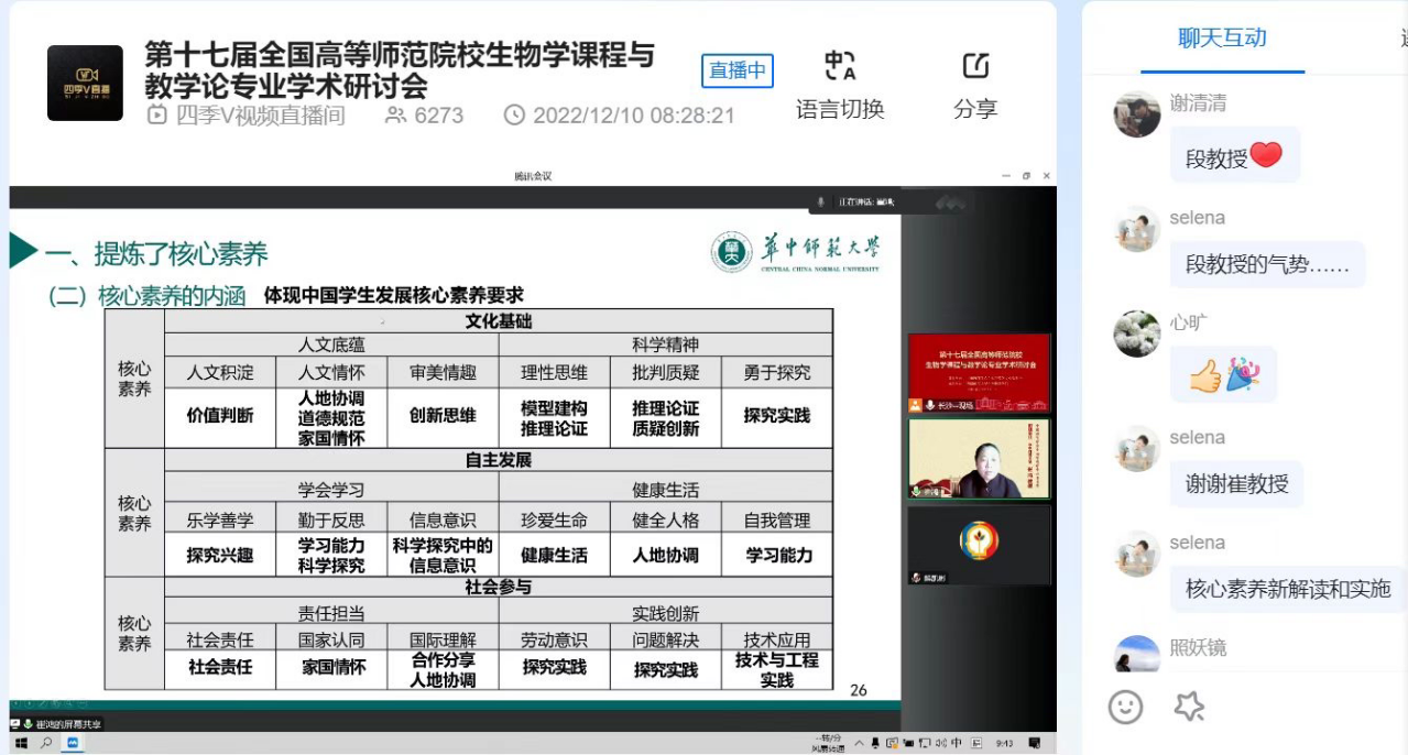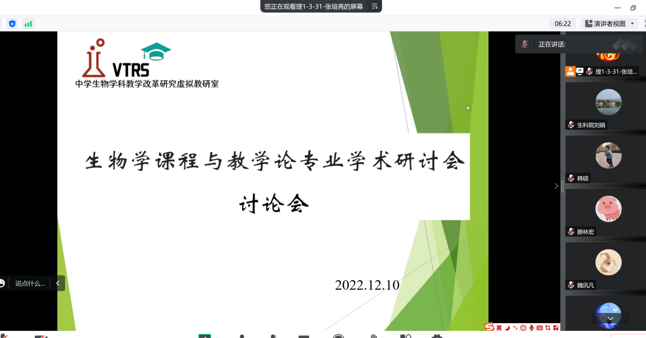 12月10日,365上市公司组织教师参加第十七届全国高等师范院校生物学课程与教学论专业学术研讨会。本次研讨会由中国教育学会生物学教学专业委员会主办,湖南师范大学365上市公司承办。