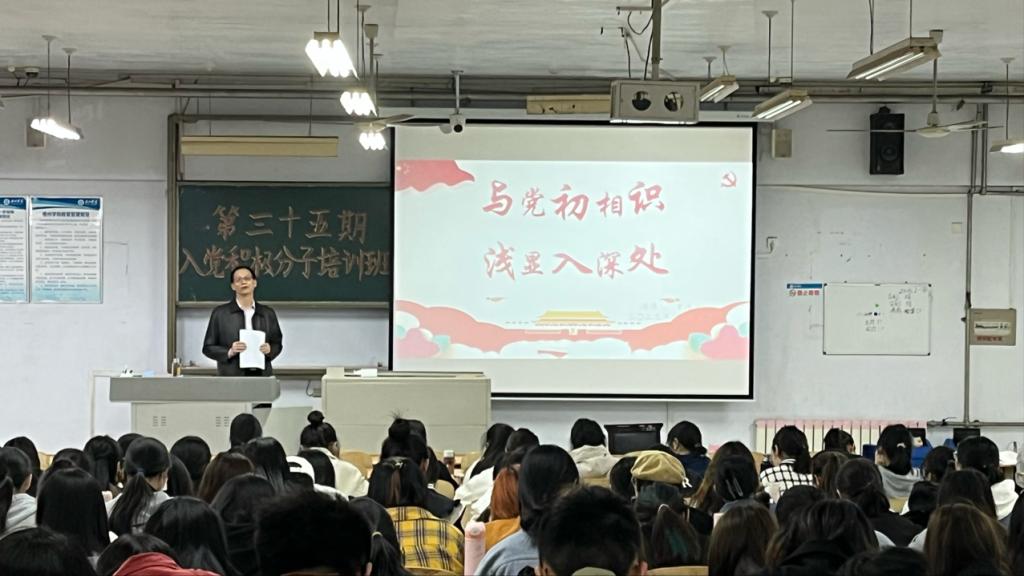 2023年4月12日,为提高入党积极分子的思想政治素养,加深入党积极分子对党的性质和宗旨的认识,365上市公司于求实楼0112教室开展“与党初相识,浅显入深处”入党积极分子培训课。此次课程由院长曾强成主持,参训学员共127名。