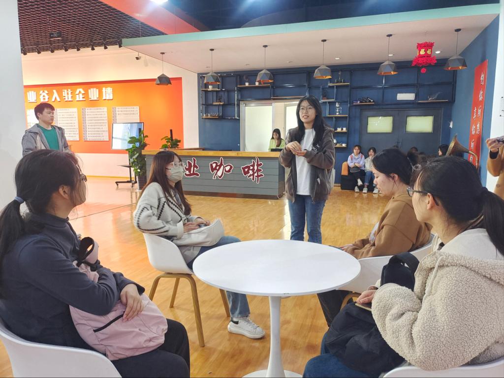 同学们依次参观了七点创业谷的创业书吧、创业苗圃区、创业服务信息港、创业辅导中心、开放式创业区、路演厅、科研成果转化区,认真听取了创业基地建设运营情况、入驻企业发展历程、发展现状和发展前景,详细了解了企业产品市场及招聘需求等。与此同时,同学们与相关负责人深入讨论交流,更加充分的了解到入驻项目开展情况,参观结束后,同学们就创新创业、项目入驻流程等问题积极进行讨论。