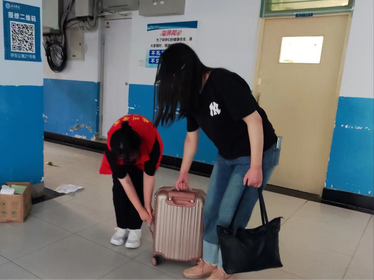 学院高度重视毕业生离校服务工作,设置“一站式”服务点,为毕业生们答疑解惑,发放相关证件,清点好寝室内的公共财产及收集寝室钥匙,高效引导其完成每一项离校流程,解决了毕业生离校程序繁琐、离校手续复杂等问题,为毕业生提供更加科学合理的服务。同时,志愿者们以小组为单位深入毕业生寝室,相互配合、各尽其责,热情细心整理归置物品,努力做到环境卫生不留死角,清洁消毒不留空白,以满腔热情欢送毕业生文明离校,助力毕业生更加圆满地画上毕业时光的句号。