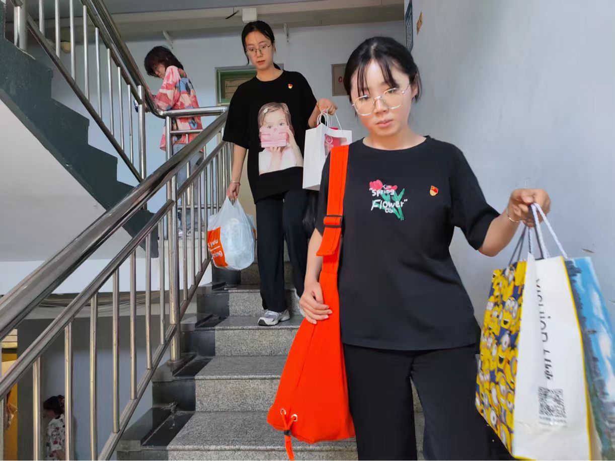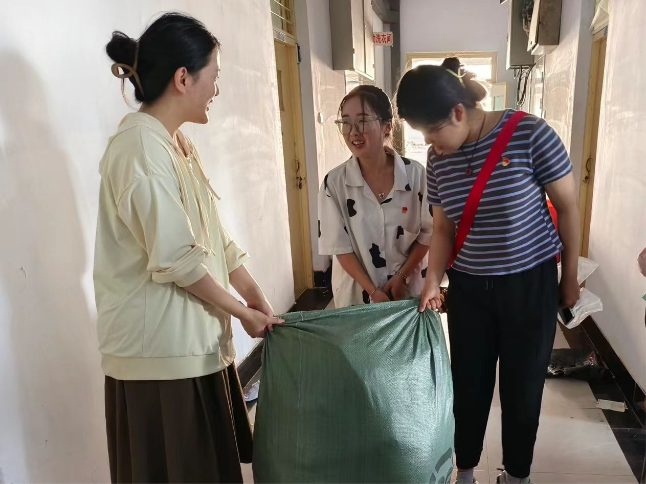 学生党员以小组为单位深入毕业生寝室,迅速进入工作状态,服从调遣,合理分工,互相配合,热情地为毕业生搬运行李,带着扫帚、抹布,一丝不苟的清扫地面、窗台等容易积攒灰尘的地方,收拾床铺,清洁桌椅、衣柜上的污渍,认真细致地打扫每个角落,确保卫生不留死角。