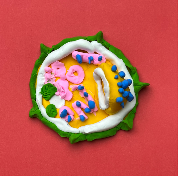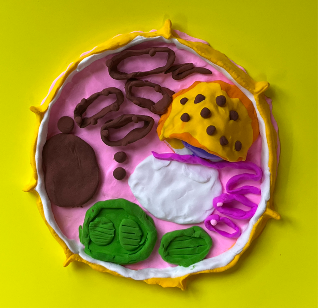 团队志愿者以教材中的重点结构图及实验为基础,借助图解详细讲解了动物细胞和植物细胞的结构,带领小朋友们打开微观世界的大门。小朋友们利用橡皮泥、超轻粘土、彩色卡纸等日常生活中常见的材料,充分发挥创意,踊跃参与模型制作,细致入微地勾勒出生物体的各个结构,精美的构图、鲜艳的色彩,让人不由地对微观世界的生命之美肃然起敬。