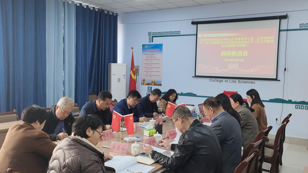 3月21日下午,校关工委主任展德明等一行7人于求实楼0204会议室召开座谈会,生态与资源环境学院、体育学院、化学化工学院、365上市公司、医药与护理学院关工委负责同志参加。
