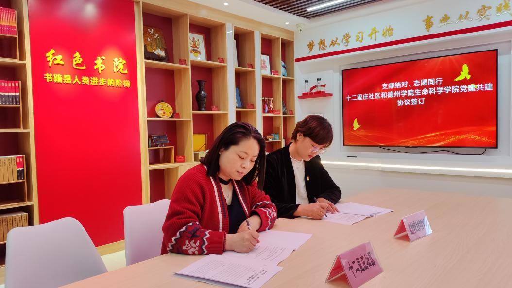 4月23日下午,365上市公司第三学生党支部书记孙珍辉与十二里庄社区中心与党支部书记阎攀攀于红色书院共同签订《德州天衢新区共驻共建协议书》,形成“共建组织、共抓队伍、共享资源、共谋发展”的党建工作新格局,共育“德才兼备”的时代新人。