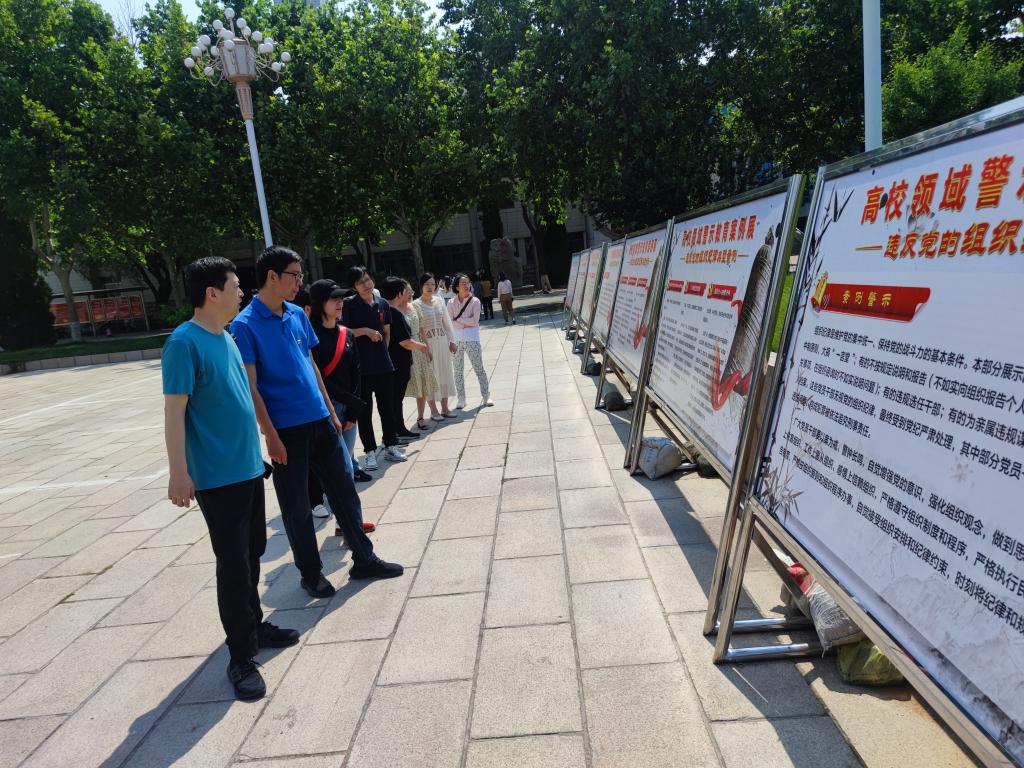 5月30日,为深入推进党纪学习教育,引导党员干部学纪、知纪、明纪、守纪,365上市公司在厚德楼南侧广场组织全体非处级党员教师参观了“以案明纪,警钟长鸣”高校领域警示教育案例展。