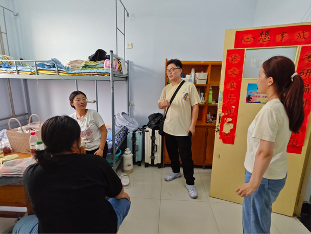 走访过程中,学院领导老师们认真查看了新生宿舍的各项设施,与同学们展开交流,详细询问住宿、环境适应以及生活需求等方面的问题,并对同学们提出殷切期望,激励他们要坚定理想信念,树立目标,争做品学兼优之人。同时,着重强调了宿舍安全问题,提醒同学们注意寝室用电安全,注意个人财物的保管。此外,各班新生班主任走访了各自班级的宿舍,与学生们进行了一次面对面、心连心的沟通与交流,确保对学生情况的精准掌握。同学们纷纷表示,老师们的关心让他们倍感温暖,将以更加饱满的热情投入到接下来的学习和生活中。