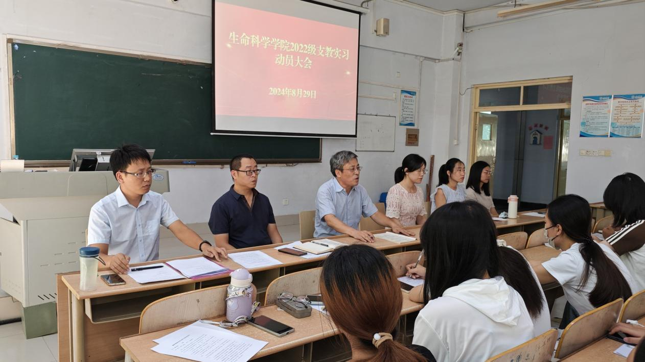 8月29日下午,为切实做好支教实习工作,增强师范生教育实习效果,365上市公司于求实楼0105教室召开2022级师范生支教实习动员大会。我院党委书记赵庆福、副院长孙颖慧、系主任张培亮、辅导员周向军、班主任梁桂红、孙秀丽及2022级师范类全体学生参加大会。
