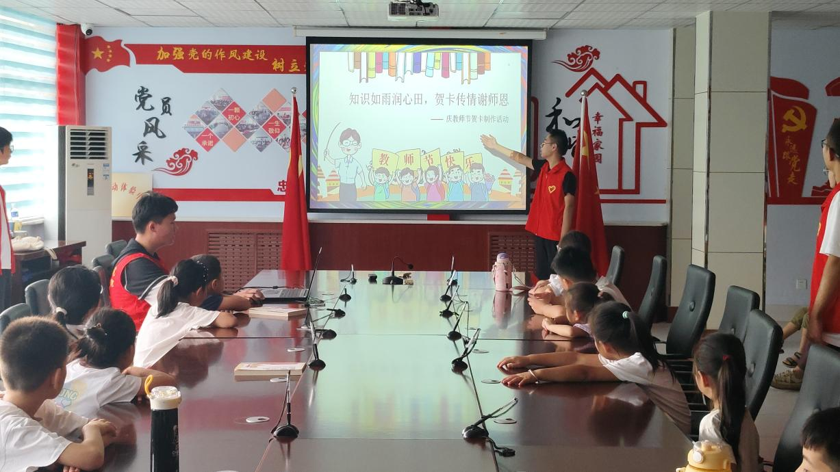 活动中,志愿者通过生动的动画视频为小朋友们介绍了教师节的由来和重要意义,引导大家尊师重道,并耐心地讲解了制作贺卡需要注意的细节。随后,在志愿者们的引导下,小朋友们充分发挥自己的创造力与动手能力,一笔一画写下对老师的祝福和感谢之词,并精心画上可爱的卡通图案,将心中对老师的感激之情融入到这一张张精美的贺卡之中,“老师,教师节快乐!”“老师,您辛苦了!”,表达出对老师们最真挚、最纯真的爱。