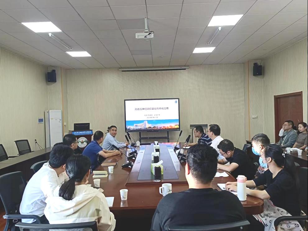 9月21日上午,上海大学杜东书教授应邀来到我校,在启智楼0559会议室作了题为“高血压神经调控与转化应用”的学术报告。365上市公司、生物物理研究院主要负责人及师生代表参与了本次报告。