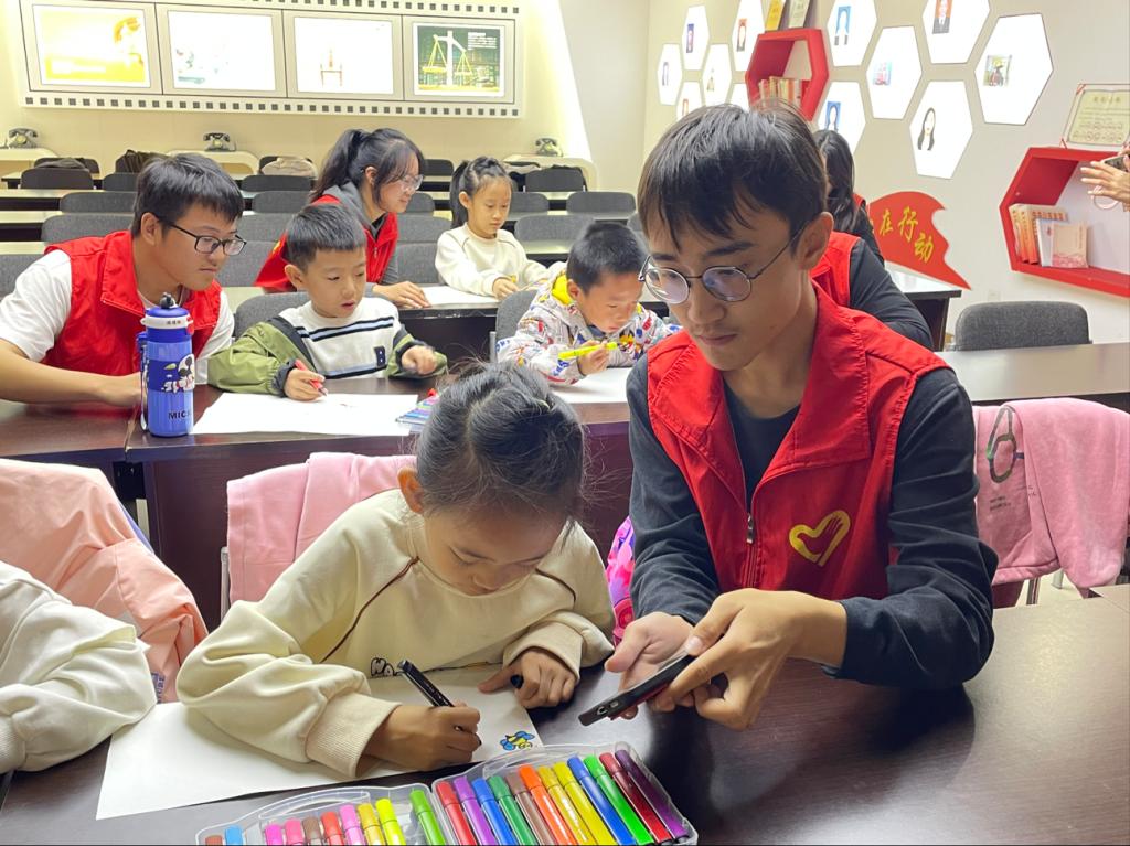 活动伊始,志愿者使用PPT为小朋友们授课,从昆虫的基本特征、种类、与人类的关系以及优秀绘画作品展示四个方面进行了详细介绍。志愿者通过丰富的图片和生动的讲解,引导小朋友们走进奇妙的昆虫世界,了解昆虫的多样性和独特之处。在讲解过程中,小朋友们听得津津有味,不时提出各种问题,志愿者们耐心解答,现场气氛热烈而活跃。随后,志愿者们引导小朋友们开始动手创作。小朋友们拿起画笔,发挥自己的想象力和创造力,绘画出自己心中最喜爱的昆虫形象。一幅幅色彩斑斓、充满童趣的作品很快呈现在大家眼前。