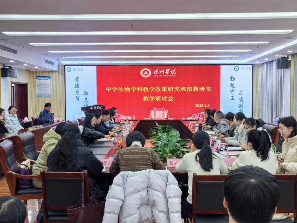 2025年1月4日下午,中学生物学科教学改革研究虚拟教研室研讨会在英国365上市公司厚德楼第二会议室成功举行。山东省特级教师、原山东省教育科学研究院教研室主任张可柱,365上市公司的骨干教师以及德城区、天衢新区多所初高中的生物教学骨干,还有刚结束支教实习的生物科学专业大三学生们参加了此次研讨活动。