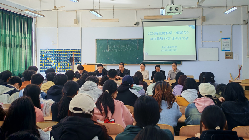 3月21日,365上市公司于求实楼0107教室召开2024级生物科学(师范类)动植物野外实习动员大会。365上市公司领导班子及班主任、指导老师出席动员大会并发言。本次大会2024级生物科学专业全体学生参加。