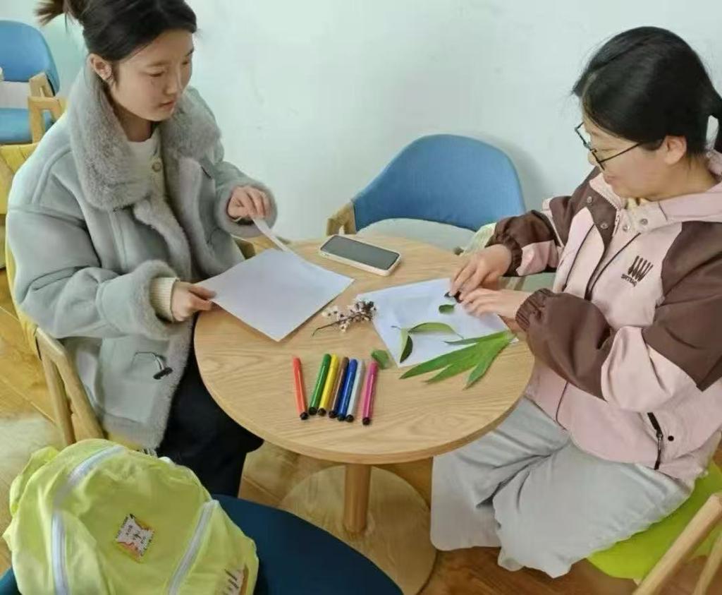 活动现场,主讲人深入浅出地讲解叶脉构造、树叶分类等自然知识,为同学们揭开植物世界的神秘面纱。随后,通过细致演示书签制作步骤,点燃了同学们的创作热情。大家迅速沉浸其中,发挥奇思妙想。有人将银杏叶与诗词搭配,营造出诗意氛围;有人用多层叶片拼贴成精美画卷,展现自然魅力。在专注创作中,同学们舒缓了心灵,释放了压力,收获了满满的成就感。