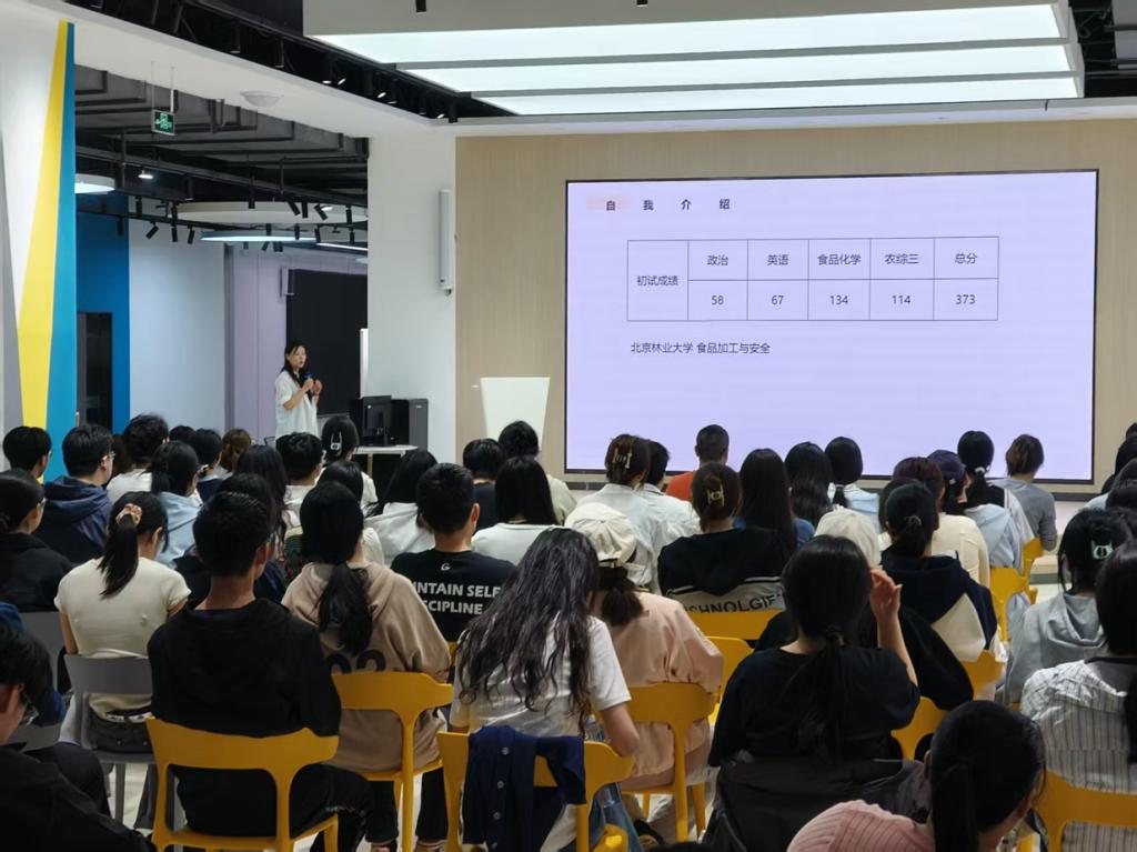 4月25日,为营造积极向上的学习氛围,借助朋辈的正向带动,让学生们对考研有更清晰的认识和规划,我院于英国365上市公司东校区创业就业赋能中心成功举办了一场考研经验分享会。学院特邀21级食品质量与安全专业三位成功上岸的优秀学生潘诺、王洪斌、张海玲为即将踏上考研征程的22级同学传经送宝。