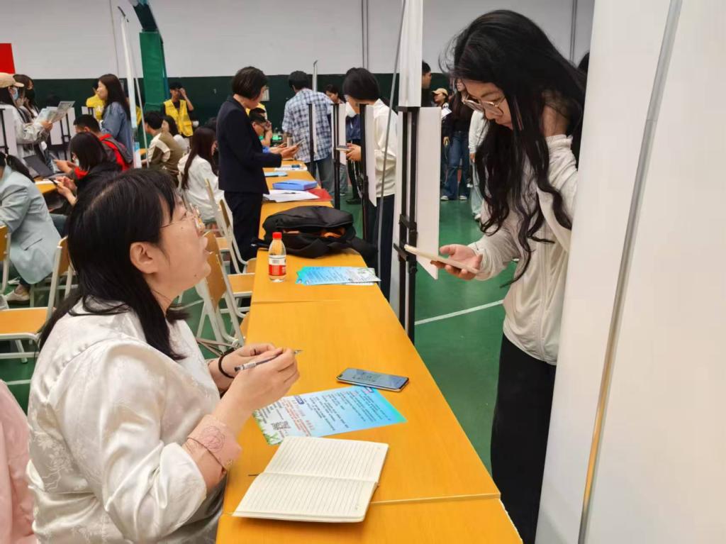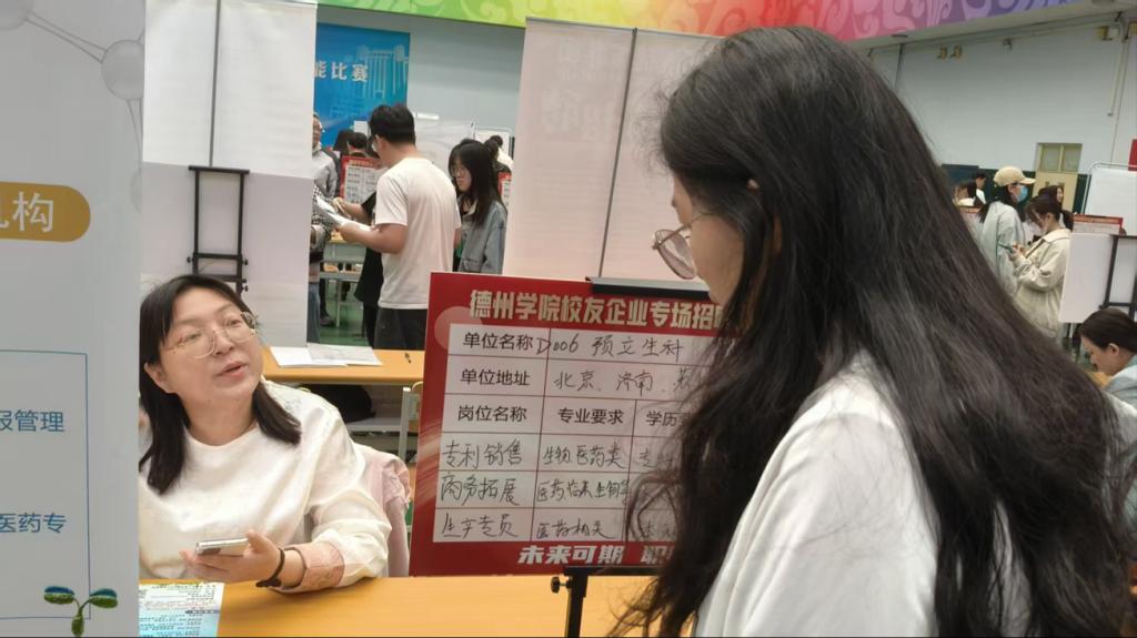 招聘会现场气氛热烈,两家校友企业精心布置特色展位,积极展示企业优势与岗位需求。北京预立生科知识产权代理有限公司通过展板,详细讲解行业模式与人才培养方向,让学生对知识产权领域的职业发展路径有了清晰认知;山东企研未来信息科技有限公司与毕业生展开面对面交流,全面介绍信息技术创新成果与人才需求,帮助学生直观了解行业趋势与岗位要求,精准对接就业需求。