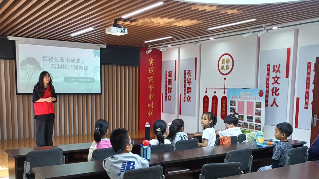 5月17日,党员志愿者们走进十二里庄社区,化身“自然导师”,通过生动讲解和化石标本展示,向孩子们揭开古生物化石的神秘面纱。用通俗易懂的语言介绍化石形成原理,引导孩子们观察化石中保留的植物纹理,感悟自然造物的神奇。在手工创作环节,党员志愿者们指导孩子们将植物标本压印成型,制作“仿真化石”模型,让孩子们在动手实践中感受自然观察的乐趣,更在潜移默化中传递了“劳动创造美”的理念。
