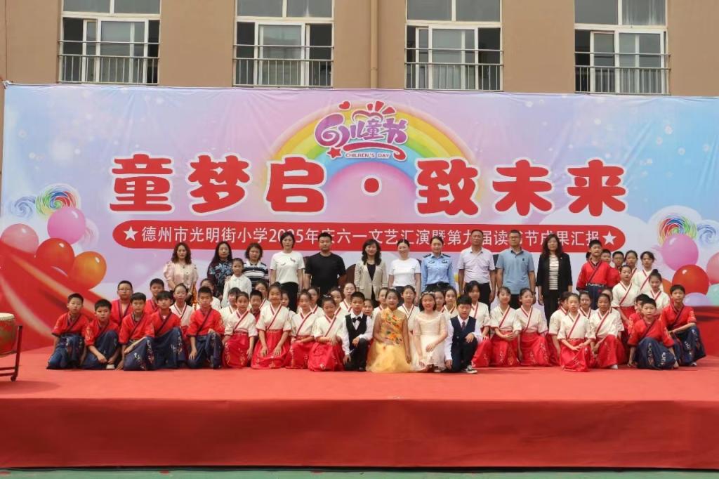 崔培培博士参加了德州市光明街小学“童梦启•致未来”为主题的庆六一文艺汇演暨第九届读书节成果汇报活动。此次“六一”儿童节活动,为孩子们搭建了展示自我的精彩舞台,让他们在活动中收获了快乐、自信与成长,德州市光明街小学的孩子们将以更加饱满的热情和昂扬的斗志,在成长的道路上奋勇前行,向着美好的未来全力奔跑。