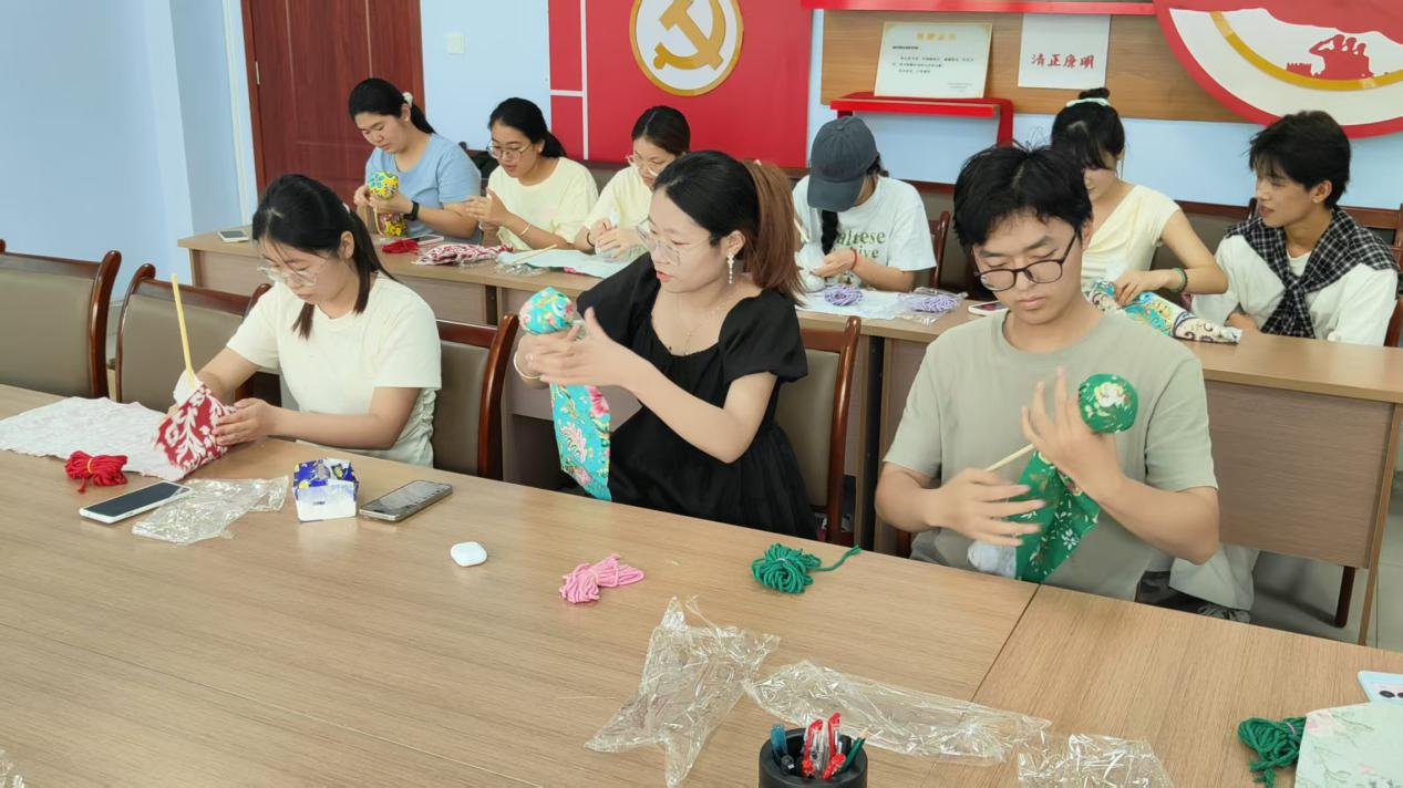 活动伊始,主讲人从生命科学的角度,剖析艾草发挥养生功效的内在机理,让同学们明白传统养生智慧与生命健康之间的紧密联系。活动中,同学们围坐桌边,专注于艾草锤制作,同学们熟练地将艾草揉成蓬松草团,塞进棉麻布袋。双手捏紧袋口,用麻绳仔细缠绕扎紧,再反复敲打、调整形状。不一会儿,一个个带着艾草清香的手工锤就完成了,在轻松的氛围中,传统文化的心灵滋养价值与心理健康的现代需求在动手中碰撞融合,成为同学们感知内心、调适状态的新纽带。