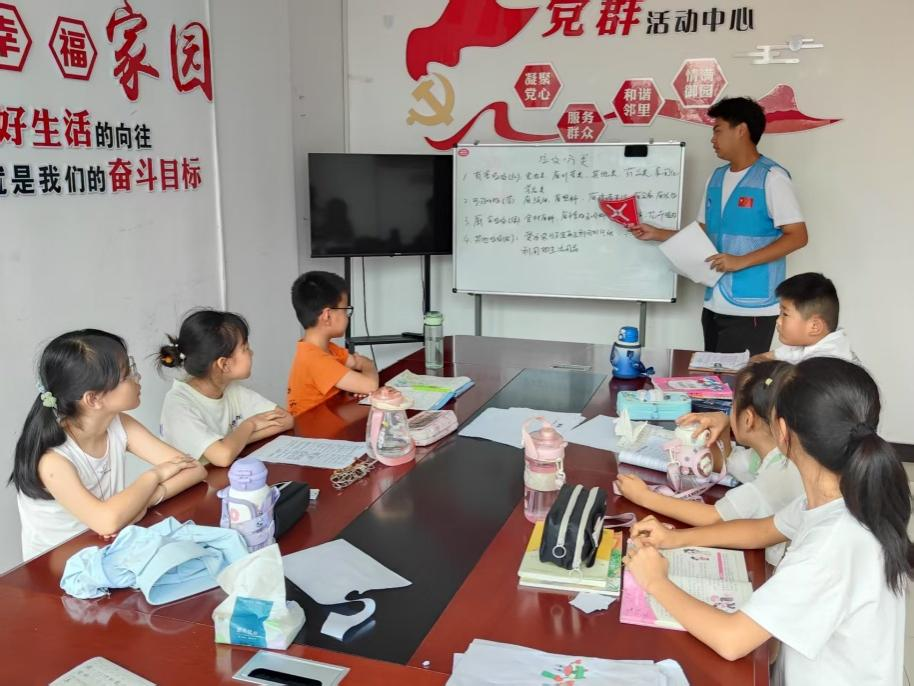 志愿期间对暑托班学生进行每日作业辅导,维持暑托班课堂秩序。与社区工作人员共同准备每日兴趣活动课,保障学生安全,积极解决学生各种作业疑问以及学科知识问题。课后进行教室打扫以及确保学生与家长之间安全对接。