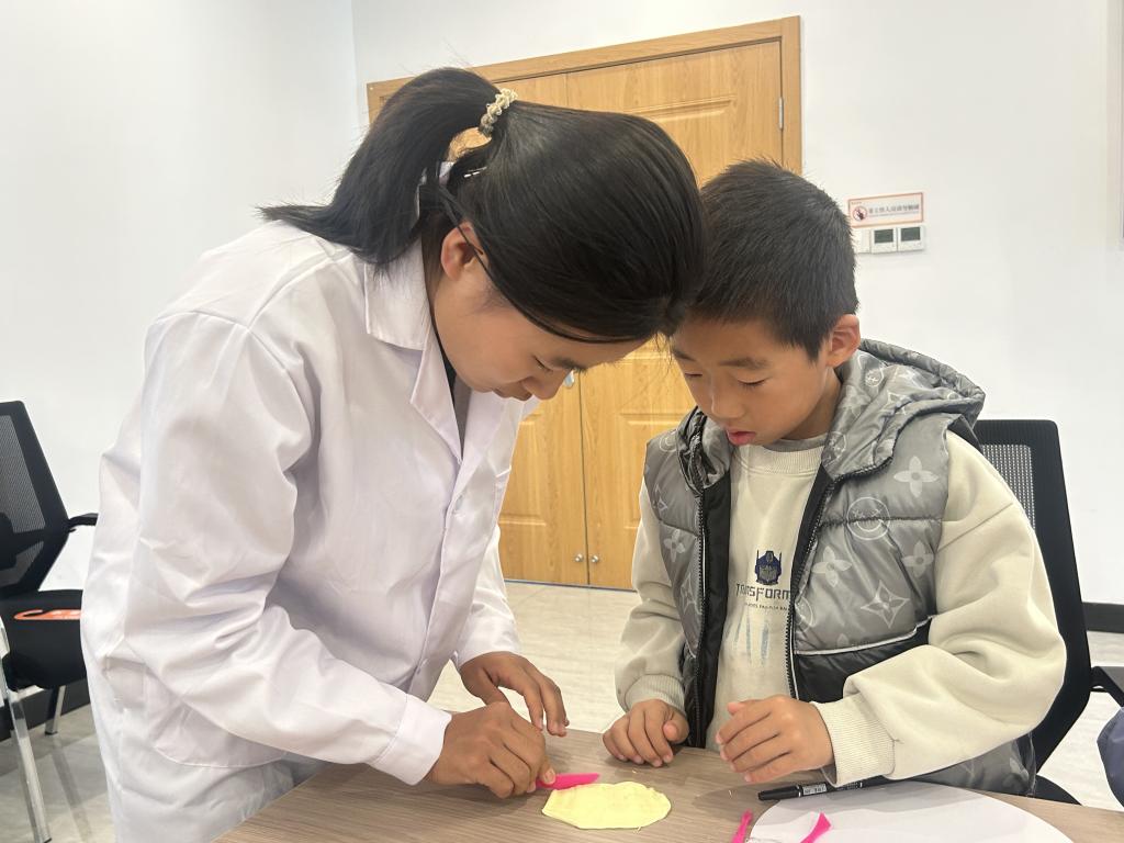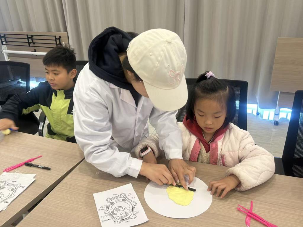 活动现场,志愿者以通俗易懂的语言,为小朋友们讲解细胞的基本定义、动植物细胞的核心结构差异,通过趣味问答、实物图示等方式,生动阐释细胞壁、叶绿体、液泡等结构的功能。在模型制作环节,志愿者一对一陪伴指导,带领小朋友们按照“选色塑形—定位摆放—细节雕琢—整体完善”的步骤,用黏土还原细胞形态。同时,志愿者们耐心解答小朋友们的疑问,引导他们还原细胞结构,小朋友们发挥创意,用多彩黏土打造出一件件形态生动的细胞模型,在动手实践中解锁生命科学的奥秘。