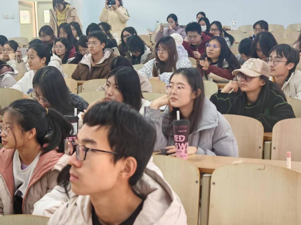 活动开场,主讲人结合色彩美学基础与生命科学专业知识,围绕“花艺色彩搭配逻辑”展开讲解。解析色彩搭配核心法则(互补色、邻近色、同色系等),结合实例说明不同搭配风格的视觉效果,补充花材色彩的科学成因(如花瓣中花青素、类胡萝卜素的显色特点),帮助同学们从专业维度理解花材色彩特性,介绍不同色彩组合传递的情感氛围(如暖色调搭配显活泼热烈、冷色调组合显静谧雅致)。接着,志愿者为同学们分发鲜切花材、花器及辅助工具,同学们依据所学色彩法则进行花艺搭配实操。