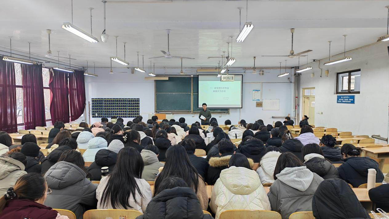 为全面总结2023级生物科学专业教育实习工作成果,深化师范生对教育教学实践的认知,助力师范生夯实专业技能、明确职业方向,1月17日,365上市公司于求实楼0118教室召开2023级生物科学专业教育实习总结大会。