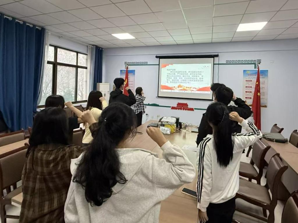 活动中,各团支部通过领学解读、案例复盘、分组研讨等多元形式,深入学习总体国家安全观核心要义,重点围绕政治安全、生物安全、网络安全、生态安全等关键领域展开学习,夯实思想根基。随后,团支部书记牵头开展“生物安全·青春担当”示范团课,结合《生物安全法》、实验室安全规范等专业内容进行讲解,引导团员结合专业学习分享感悟,推动安全意识转化为专业使命与行动自觉。学习环节结束后,团员们庄严宣誓,以庄重的仪式感强化责任担当,凝聚起守护国家安全的青春共识。