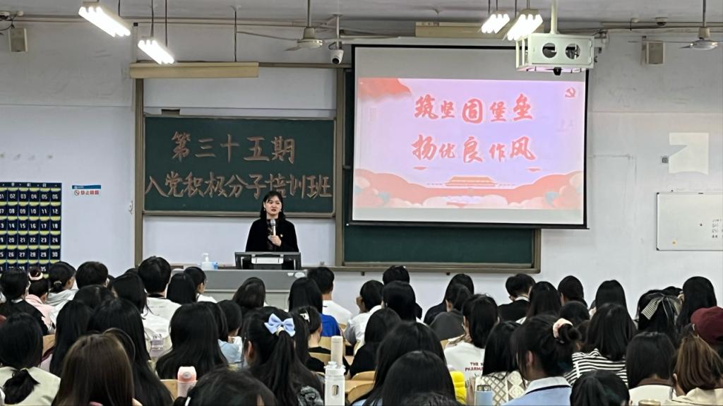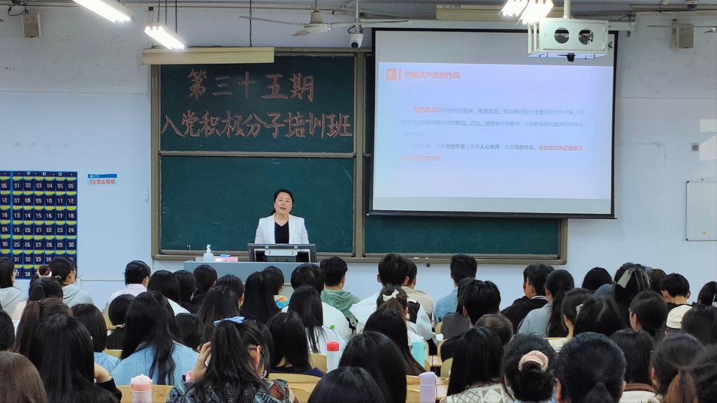 2023年4月18日,为帮助入党积极分子进一步掌握党的知识,保持党组织的先进性和纯洁性,365上市公司党委副书记夏书珍、第三学生党支部书记孙珍辉同志于求实楼0117教室作“筑坚固堡垒,扬优良作风”主题党课讲座。参训学员共127名。