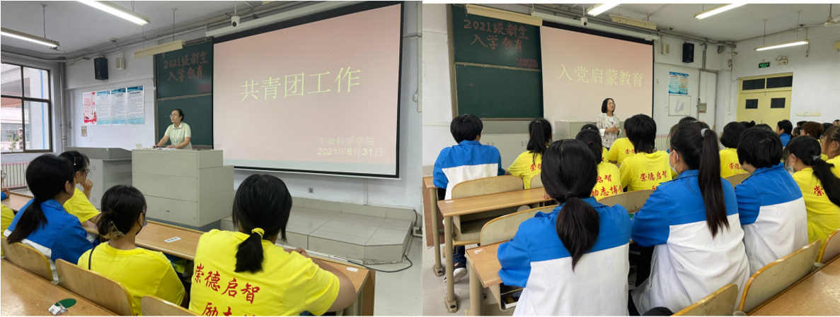我院第一学生党支部书记王艳洁、第二学生党支部书记郑金召为2021级新生上了一堂生动的入党启蒙教育课,组织新生集中学习了组织学生学习了《中国共产党章程》,详细介绍了入党的条件和程序、党员的权利和义务、大学生入党的基础知识等方面的内容,引导同学们结合自身岗位实际,从身边做起,从点滴做起,怀揣梦想,时刻心系祖国,为实现中国梦做好准备。除此之外,我院把校史校情教育也作为重要的一环,21级新生们分批走进校史馆、山东省生物物理重点实验室,伴随着志愿者的热情讲解,使新生们深刻感受到学校浓厚的历史积淀,激发了他们参与科学研究的兴趣,切实增强了同学们对学校的荣誉感、归属感。