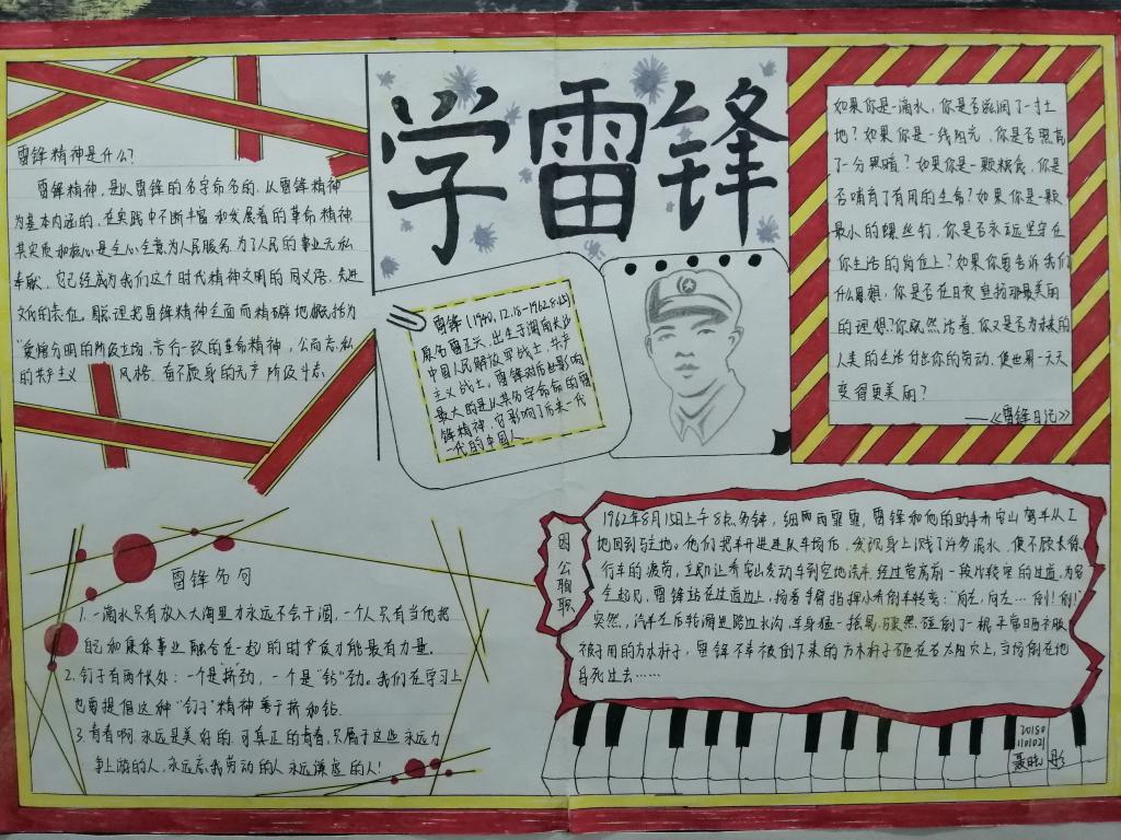 此次手抄报活动使同学们认真学习了雷锋精神,引导学生树立“无私奉献、勤劳勇敢、自强不息、乐于助人”的良好品质,培养“知行合一、德才兼备”的新时代青年。