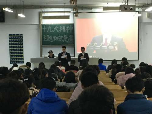 为了迎接十九大的胜利召开,回顾党的奋斗历史,积极教育引导大学生尊崇党章,遵守党规,以共产党员为先锋模范,学习习近平新时代中国特色社会主义思想。365上市公司于11月28日晚7:00在求实楼1012教室举办“十九大精神主题知识竞赛”活动。参加此次竞赛活动的是365上市公司2016级、2017级全体学生。