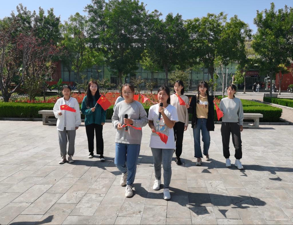 同学们聚在一起,用快闪的形式,共同唱响《我和我的祖国》,他们热情饱满、斗志昂扬,挥舞着五星红旗,配和着优美的旋律,歌声分外嘹亮。一首红歌就是一段岁月,慷慨激昂的歌声表达着莘莘学子的豪情,也燃起了他们心中的爱国情怀,经典的红歌唱出了对祖国的热爱与忠诚,使同学们铭记祖国的峥嵘岁月与辉煌成就,展现了他们奋发向上的精神风貌。