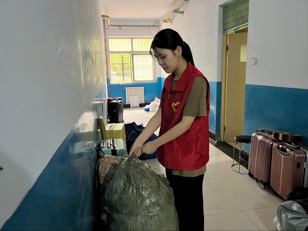 活动开始前,学生党员以最佳的精神面貌和认真负责的态度快速到达自己的岗位,他们或帮助毕业生们整理物品、或搬运行李,上下奔波、不辞辛劳,用自己的“爱心”温暖着即将踏上人生新征程的毕业生。此外,他们还协助毕业生们快捷、有序地办理离校手续,与毕业生们一同打扫寝室卫生、开窗通风透气、整理归置物品、清扫垃圾、杀菌消毒,在为毕业生提供周到服务的同时,也减轻了公寓楼管理员的工作量。