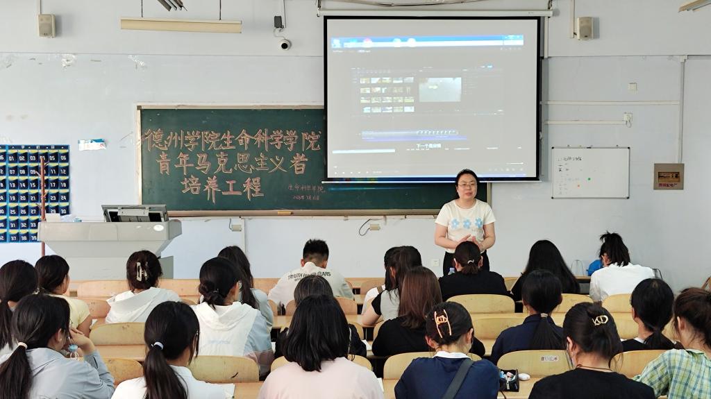 培训会上,王爽同学从新闻的定义及特点、新闻的类别、格式和写作流程四个方面向学员们介绍了新闻稿撰写的格式与要求,以本次培训为例具体讲解了新闻写作流程。随后,刘可心同学介绍了视频拍摄的前期准备、拍摄要求、注意事项等,并结合操作视频向学员们讲解了如何运用软件进行视频剪辑。最后,团委书记王艳洁做出总结性发言,要求学员们端正学习态度,遵守培训纪律,做好课堂笔记,在思想和行动上重视此次培训,做到学有所成,学有所获,力争成为一名合格的马克思主义者。