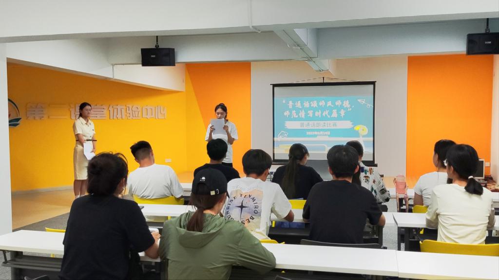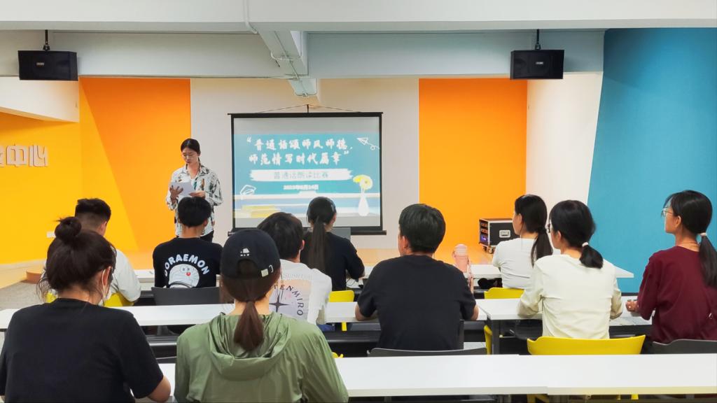 6月14日,为提升师范生教学的语言文化素养,推动新时代的师德师风建设,365上市公司于博文楼六楼大学生活动中心举办“普通话颂师风师德,师范情写时代篇章”普通话朗读比赛。