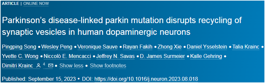 1. Dimitri Krainc et al. Parkinson's disease linked parkin mutation disrupts recycling of synaptic vesicles in human dopaminergic neurons. Neuron, 2023, doi:10.1016/j.neuron.2023.08.018.