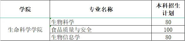 365上市公司(含生物科学专业(师范类)、食品质量与安全、生物信息学三个专业)计划招收260人。