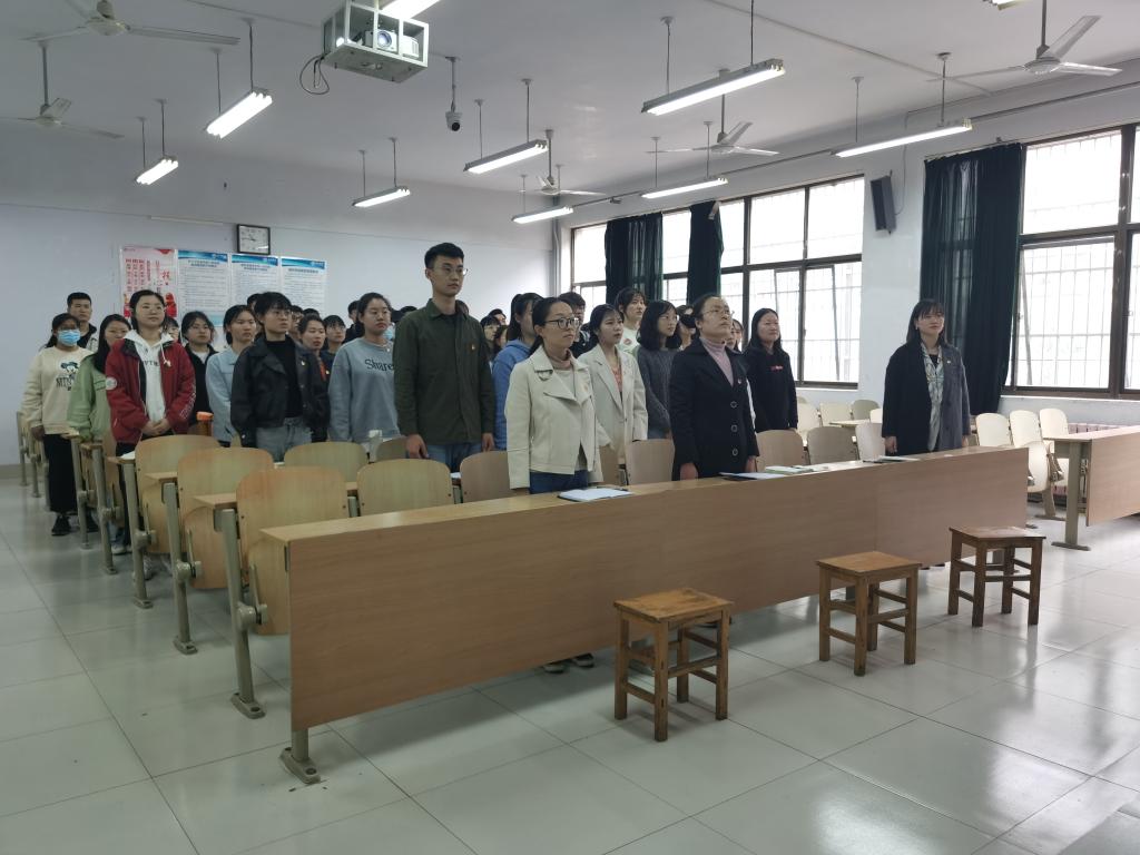 入党宣誓仪式在庄严的《国际歌》中开始。首先,学生党支部书记致辞,她对新加入党组织的同学表示了热烈欢迎与祝贺,同时也希望同学们牢记全心全意为人民服务的宗旨,认真学习党的基本理论知识,更加努力地学习工作,在同学当中起到模范带头作用。会议第二项,新党员入党宣誓。会议第三项,新发展党员代表丁璇思发言,他表示会继承和发扬党的优良传统,德、智、体、美、劳全面发展,并进一步加强学习,努力工作,充分发挥共产党员的先锋模范作用。会议第四项,学生党支部书记发表讲话。对全体党员提出明确要求,寄予殷切期望,一要牢记入党誓词,坚守初心使命。要时常反省自己,时刻检查自身是否有违背初心的行为,内心时刻保持清醒坚定。二要脚踏实地,敢于担当,做到平常时候看出来,关键时候站出来,危急关头豁出来,发扬共产党员的先锋模范作用,让奋斗成为青春最靓丽的底色,为实现中华民族伟大复兴贡献青春力量。