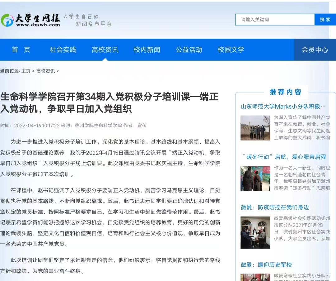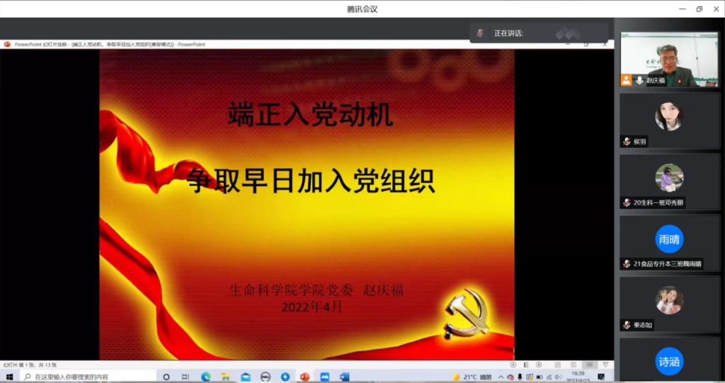 为进一步推进入党积极分子培训工作,深化党的基本理论、基本路线和基本纲领,提高入党积极分子的基础理论素养,我院于2022年4月15日通过腾讯会议开展“端正入党动机,争取早日加入党组织”入党积极分子线上培训课。此次课程由党委书记赵庆福主持,365上市公司入党积极分子参加了本次培训。