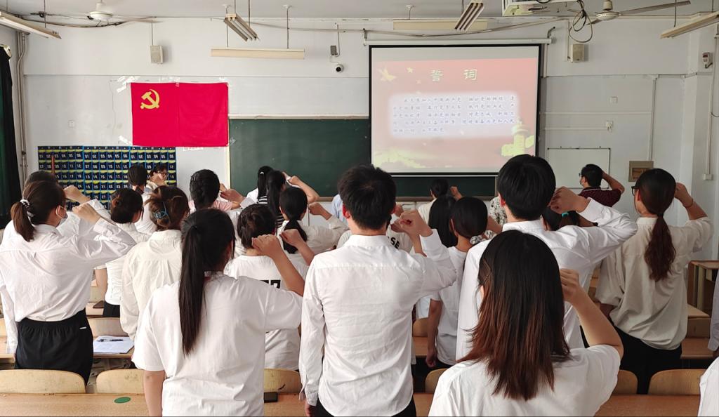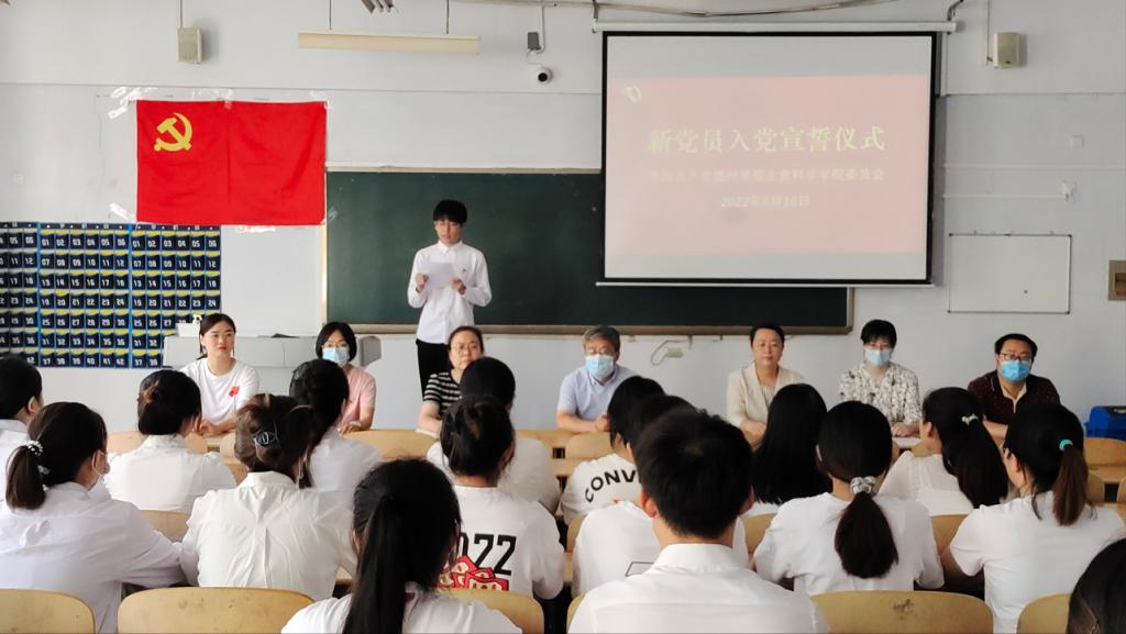 6月16日,为激励新发展党员牢记初心使命、增强党员意识和责任意识,365上市公司于求实楼0105教室举行新党员入党宣誓仪式。此次宣誓仪式由王琦老师主持,365上市公司党委书记赵庆福、党委副书记夏书珍列席指导,团委书记王艳洁,辅导员周向军、郑金召和孙珍辉老师出席活动。