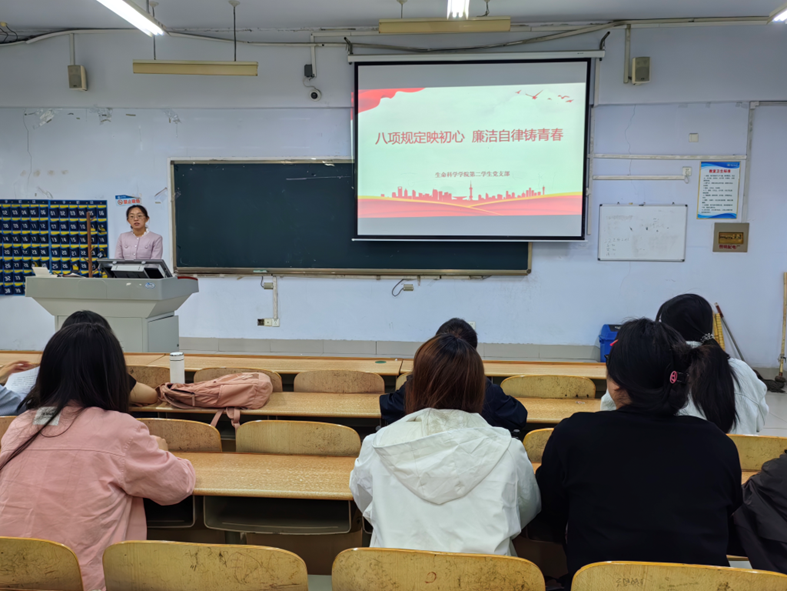 为深入学习贯彻中央八项规定精神,引导新时代大学生树立廉洁自律意识,365上市公司于4月15日在求实楼0105教室组织开展“八项规定映初心,廉洁自律铸青春”主题党课。本次党课由第二学生党支部书记郑金召讲授,全体学生党员参加此次学习。